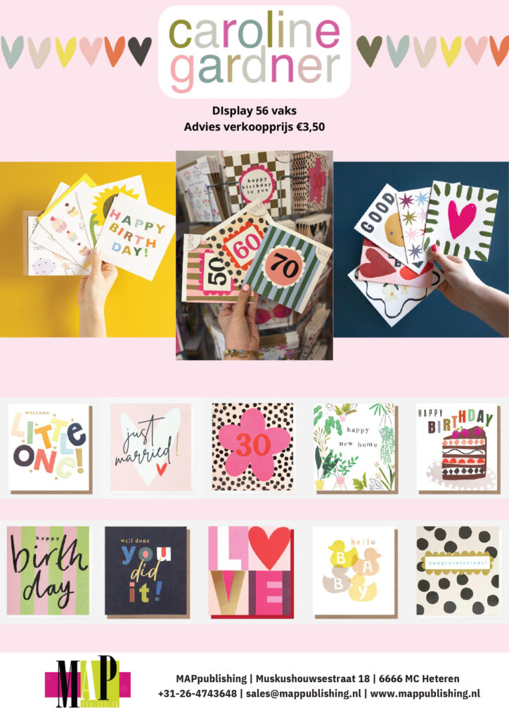 Naast de succesvolle stationery lijn van Caroline Gardner is het assortiment ook uitgebreid met een wenskaarten collectie.
